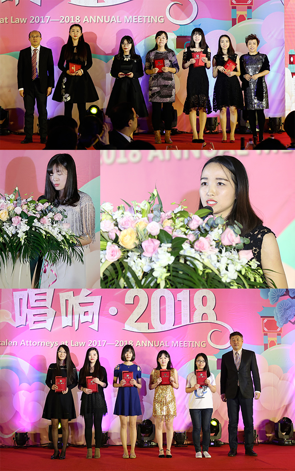 在接下來的優秀員工頒獎環節,集佳共有42名同事分別榮獲“最佳業績獎”、“最佳進步獎”、“最佳服務獎”、“最佳敬業獎”、“最佳撰寫獎”和“優秀撰稿獎”,68名同事獲得“全勤獎”。集佳在2017年能夠交出如此令人滿意的答卷,是所有集佳人共同努力的結果,人人爭優,更是推動集佳不斷向前發展的堅實動力。正如優秀員工代表的發言:“2018年又是一個新的開始,希望能在未來的日子里,與各位同仁一起相互陪伴,成長,為公司,也為了我們自己美好的明天而努力?!?/p>