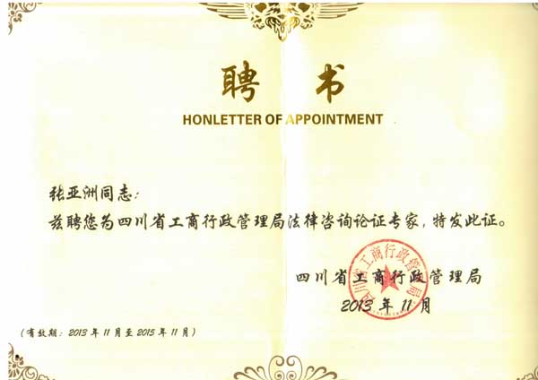 近日,經(jīng)四川省工商局綜合評議,北京市集佳律師律師事務(wù)所張亞洲律師被聘為四川省工商局行政決策法律咨詢論證專家組成員。此次一同受聘的,還包括四川省人大、省政府法制辦、省法院、省公安廳等共11家單位的有關(guān)專家學(xué)者,集佳律師事務(wù)所成為本次受聘唯一的律師事務(wù)所。