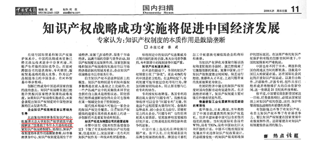 《中國貿(mào)易報》:知識產(chǎn)權(quán)戰(zhàn)略成功實施將促進(jìn)中國經(jīng)濟發(fā)展