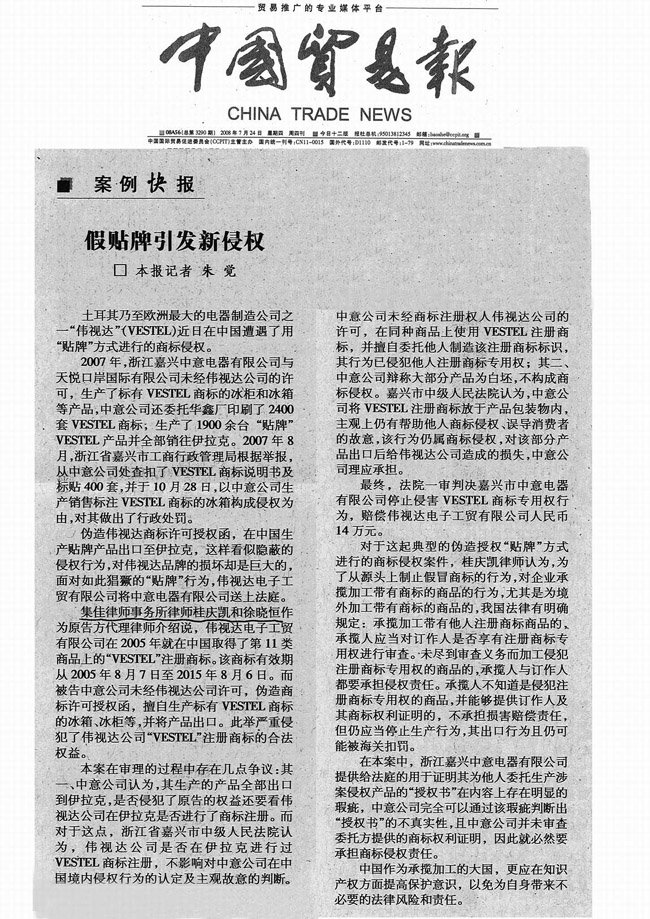 《中國貿(mào)易報(bào)》:假貼牌引發(fā)新侵權(quán)