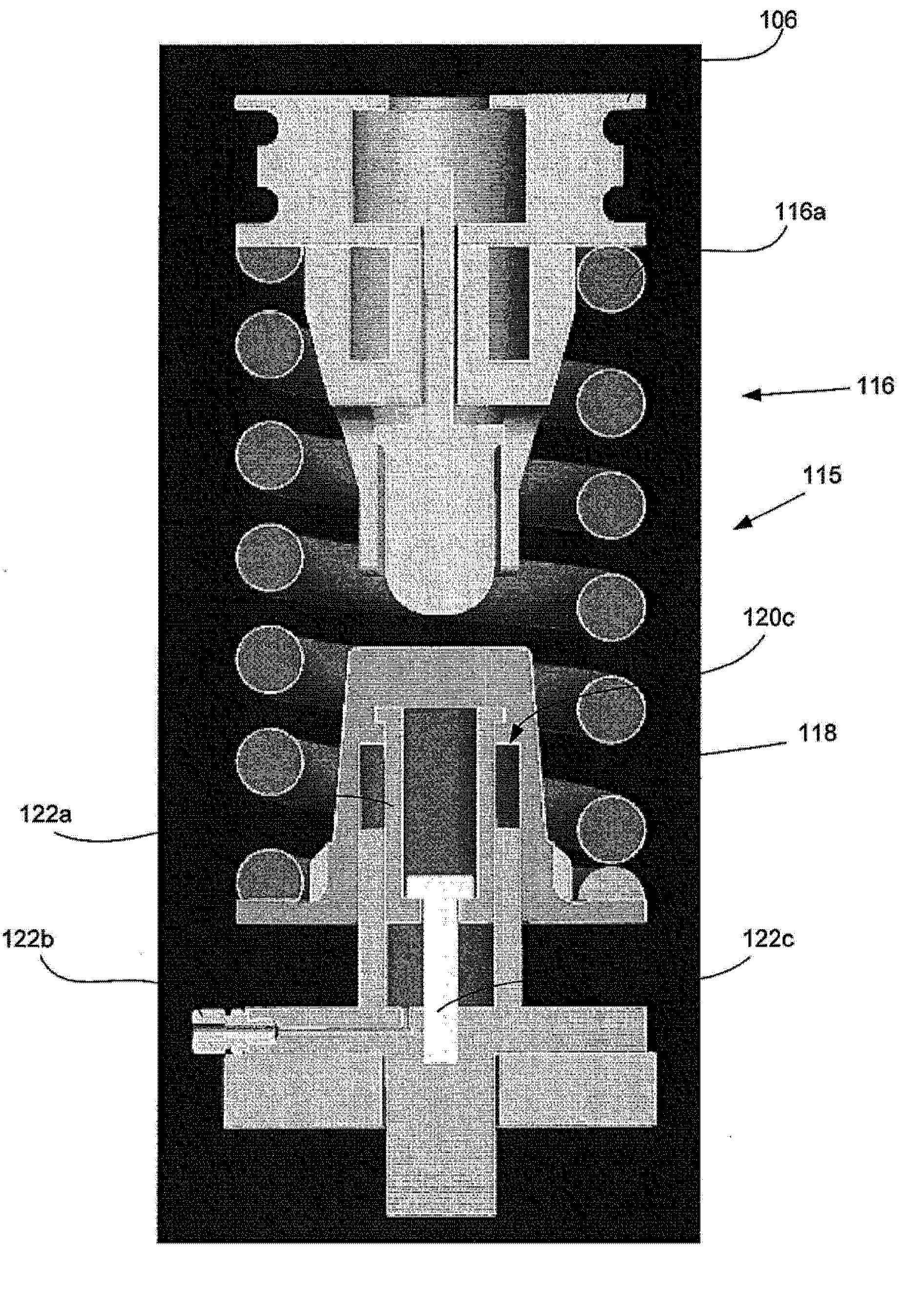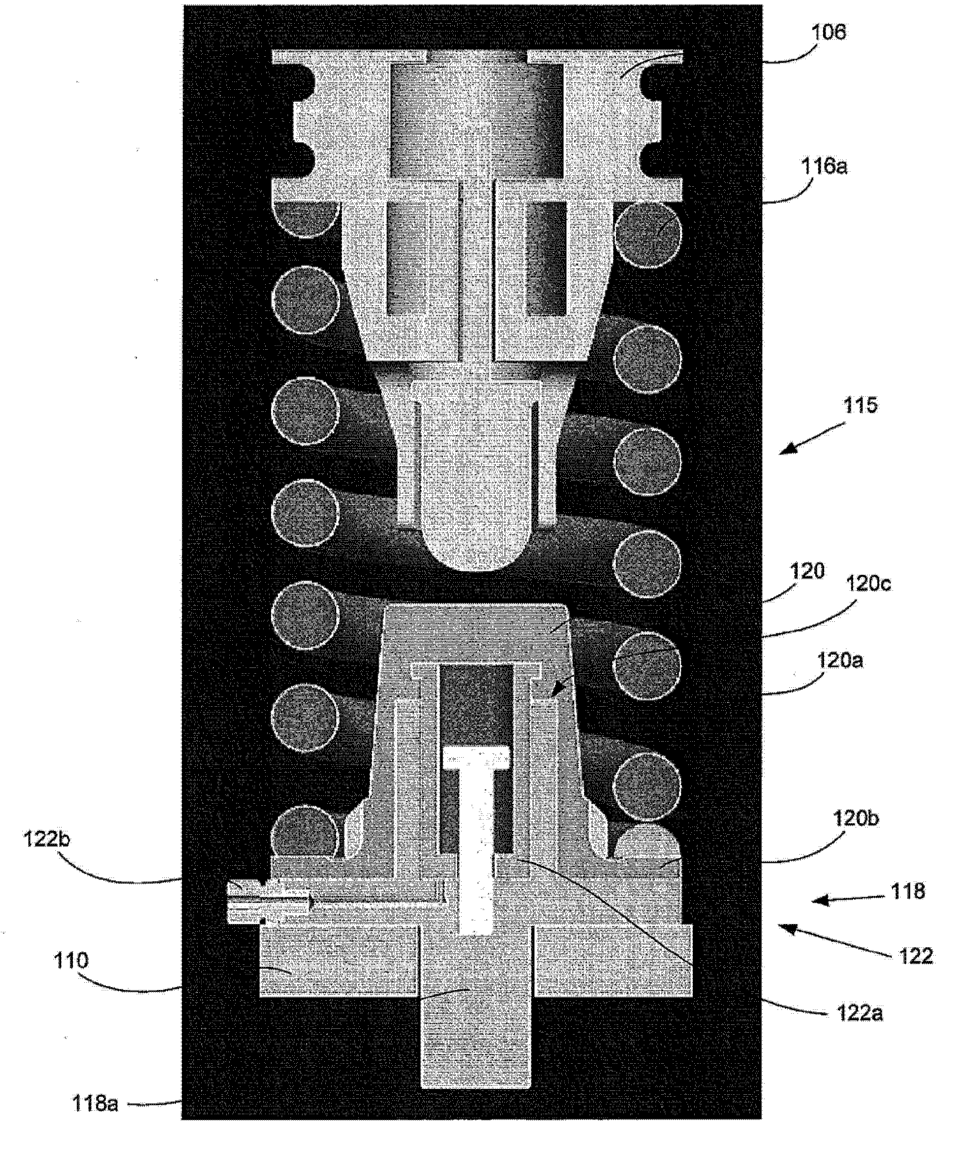 對比文件1公開了一種調平懸掛115,其包括與SML118接合的彈簧116a,其中彈簧116a的上表面與上部結構106(對應于本申請中的廂體)接合,而SMLS的下端118a與轉向架110接合。此外,SMLS118包括彈簧支架(SM)120和活塞組件122。SM 120包括定位在螺旋彈簧116a內的空心缸筒120a。
