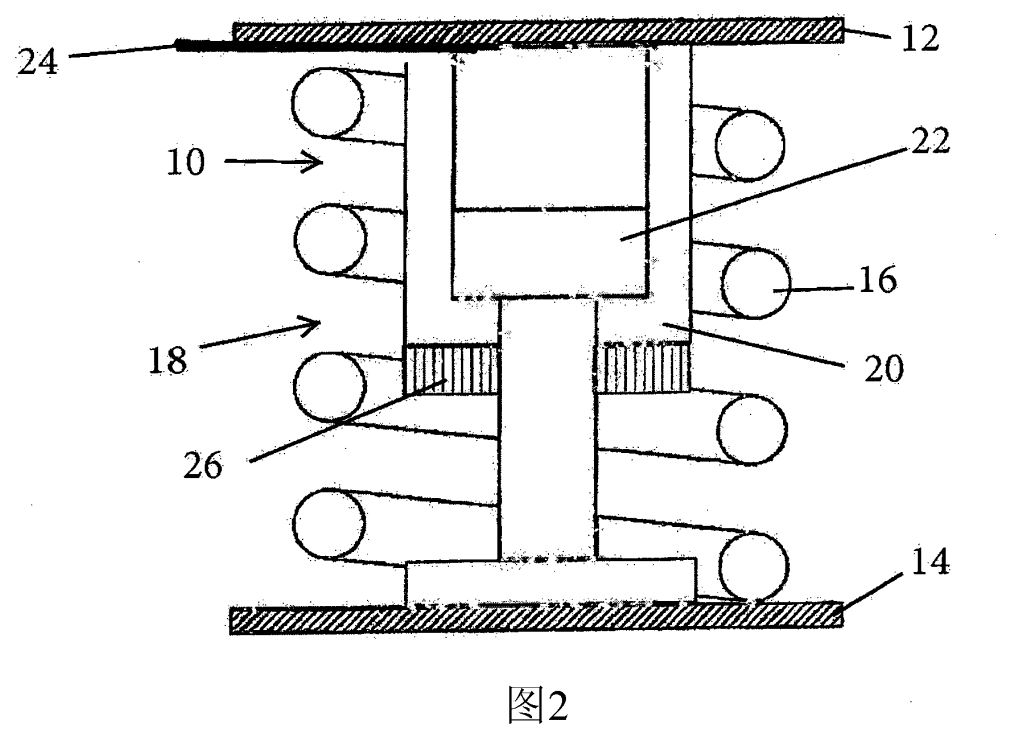 此外,對比文件1中的活塞組件122需要克服廂體(上部結構)的重力和彈簧本身的重力。然而,本申請中的彈簧總是跨接廂體和轉向架之間的空間。也就是說,往復活塞元件僅僅需要克服廂體的重力以輔助彈簧。因此,所需要的高度控制能量降低。