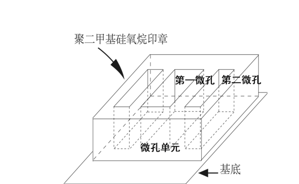 一緊密覆于所述基底上表面上的下表面上具有至少一組微凹槽單元的聚二甲基硅氧烷印章;