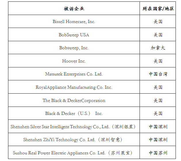 2017年4月18日,美國掃地機器人公司iRobot先后向美國國際貿易委員會(ITC)提起了“337調查”申請,指控包括3家中國公司在內的共11家企業侵犯了其在美的6項專利中一項或多項權利要求,并要求有限排除令(limited exclusion order)及停止侵權(cease and desist order)。