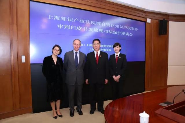 4月20日,上海知識產權法院與中國(上海)自由貿易試驗區(qū)管委會聯(lián)合召開涉自貿區(qū)知識產權案件審判白皮書發(fā)布暨司法保護座談會。上海市高級人民法院副院長張斌、浦東新區(qū)副區(qū)長王靖、上海知識產權法院院長王秋良、浦東新區(qū)知識產權局局長林本初出席,集佳侯玉靜律師、黃鶯律師陪同拉菲羅斯柴爾德集團CEO Prats先生、中國市場部經理宋萍經理參加,與來自十余家知名企業(yè)的代表、權威媒體共同見證了白皮書的發(fā)布,并應邀出席司法保護座談會。