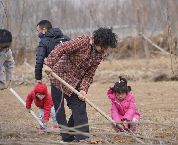 到達(dá)植樹基地,大家熱情高漲,立刻投入到植樹勞動(dòng)中。有人挖坑,有人扶苗,有人培土,有人澆水,各個(gè)環(huán)節(jié)有條不紊,不管是白發(fā)蒼蒼的爺爺奶奶,還是稚氣十足的小朋友,每個(gè)人都忙的不亦樂乎,處處是一派熱火朝天的景象。盡管褲腳上沾滿了沙土,額頭上冒出了汗珠,但大家絲毫不在意,依然干勁十足,一時(shí)間,在歡聲笑語中,植樹基地呈現(xiàn)出初春的生機(jī)與歡樂。
