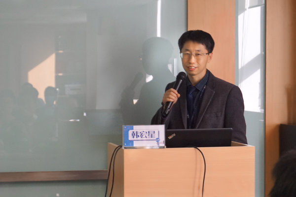 ▲張亞洲老師為鄭海洋頒獎                                                                       ▲彭鯤鵬老師為韓宏星頒獎