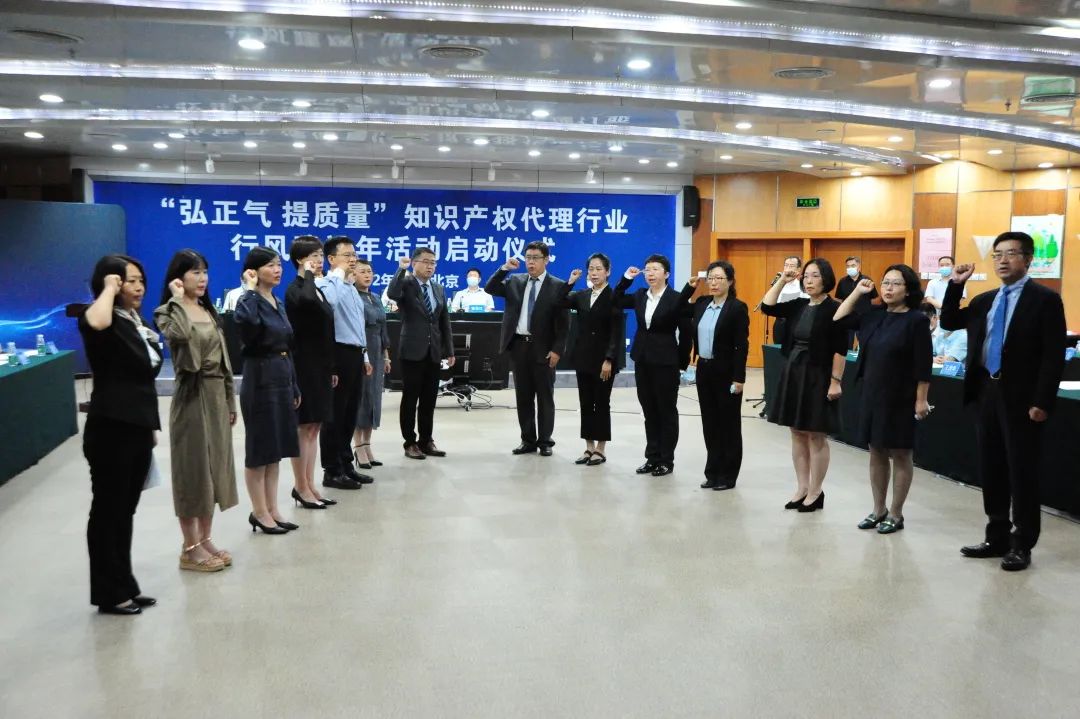 2022年7月13日,由國家知識產權局運用促進司指導,中華全國專利代理師協會及中華商標協會共同主辦的“‘弘正氣 提質量’知識產權代理行業行風建設年活動”啟動儀式成功舉辦。本活動旨在弘揚并傳承專利代理行業“工匠精神”,激發行業從業人員職業榮譽感,強化行業高質量發展導向,進一步推進行風建設,樹立專利代理標桿楷模,積極引導專利代理行業健康發展。啟動儀式以“線下+線上視頻”方式舉行,邀請了國家知識產權局、中華商標協會、中華全國專利代理師協會等相關領導現場參會,同時在北京、上海、河北、江蘇等8個省區市設置線上分會場。大會邀請二十家知識產權代理行業代表參加活動,集佳知識產權出席并參加宣誓環節。