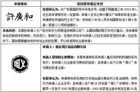| 通過(guò)駁回復(fù)審予以核準(zhǔn)的案例 |