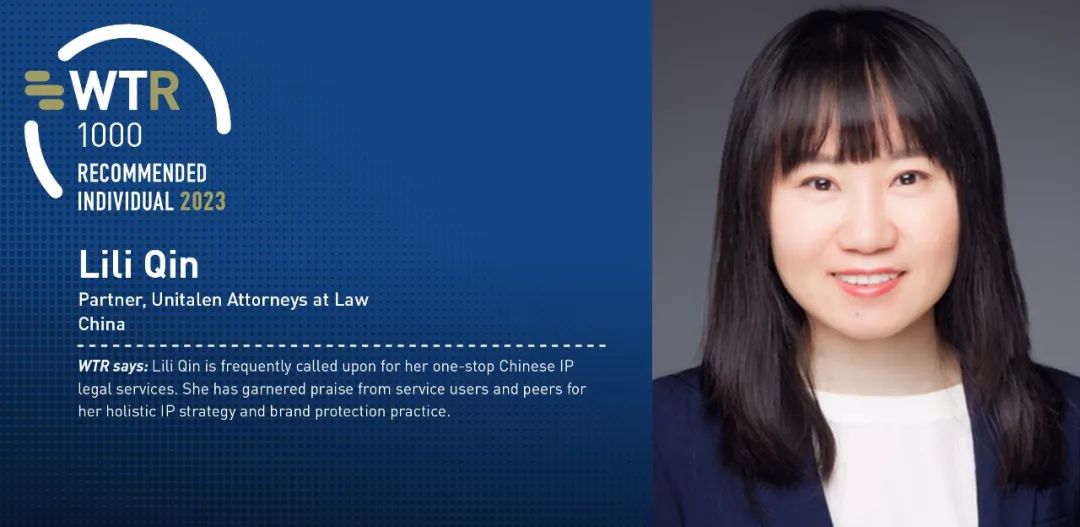 WTR評價:“WTR1000的新秀秦麗麗律師曾為VISA、超微和星展銀行等提供一站式中國知識產權法律服務,并以全面的知識產權戰略和品牌保護實踐贏得了客戶和同行的贊譽?!?/em>