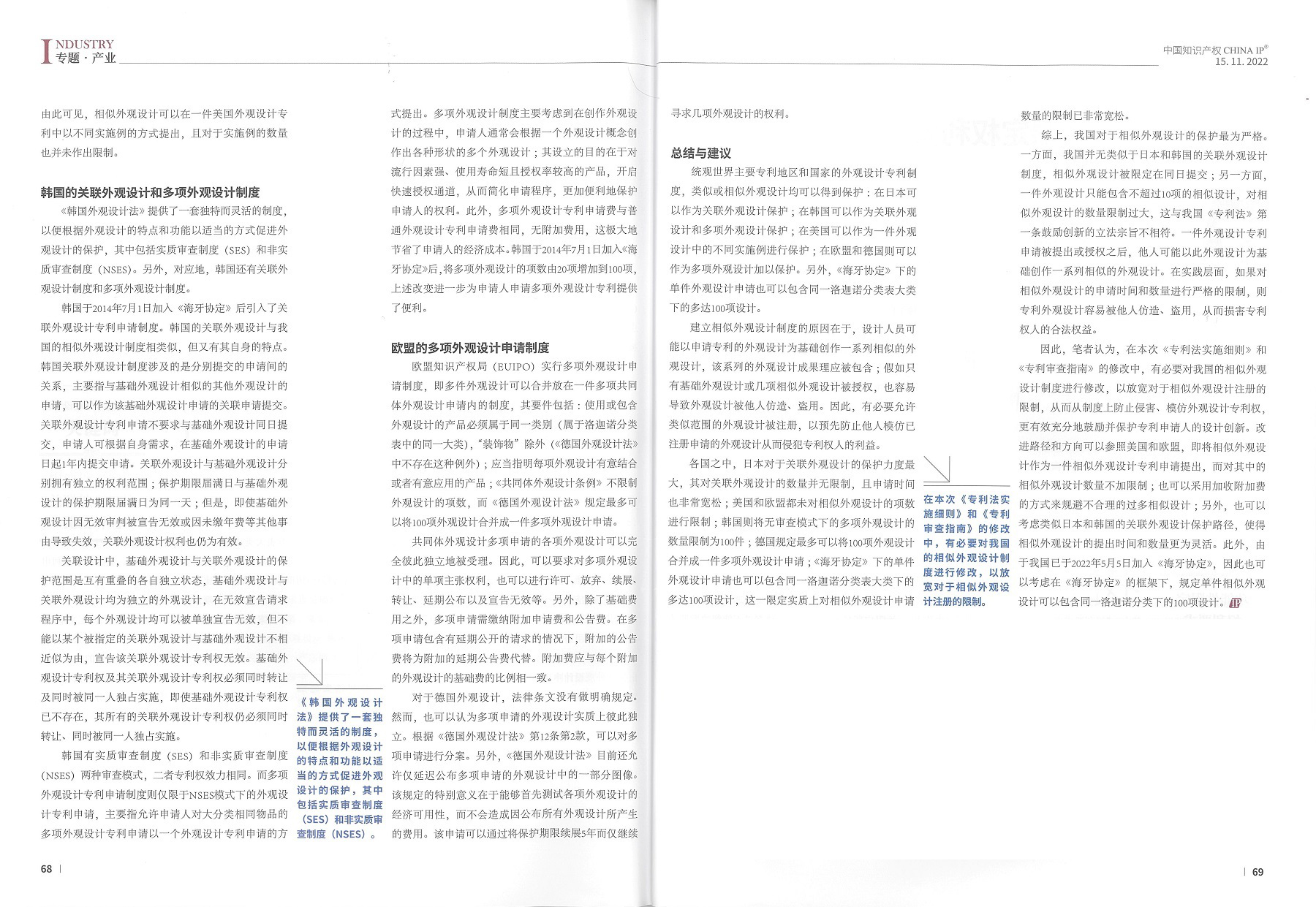 集佳文章《關于相似外觀設計制度的比較研究及修法建議》在《中國知識產權》發表