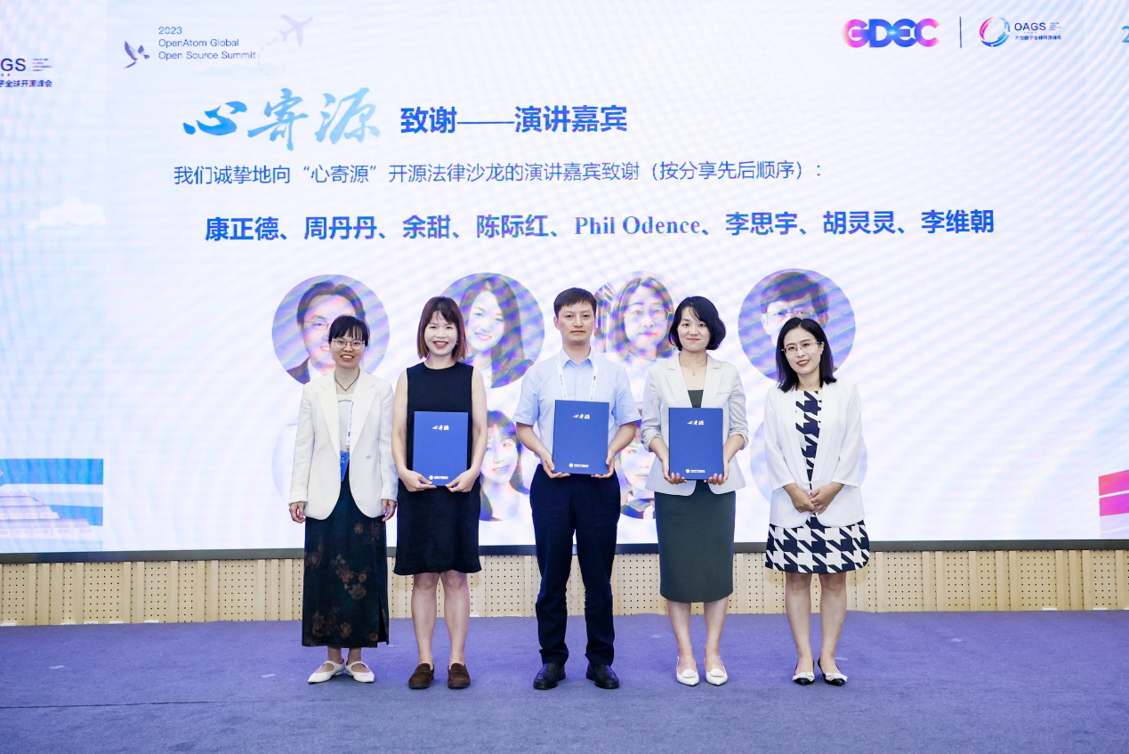周丹丹律師(右二)作為“心寄源”開源法律沙龍演講嘉賓上臺接受致謝