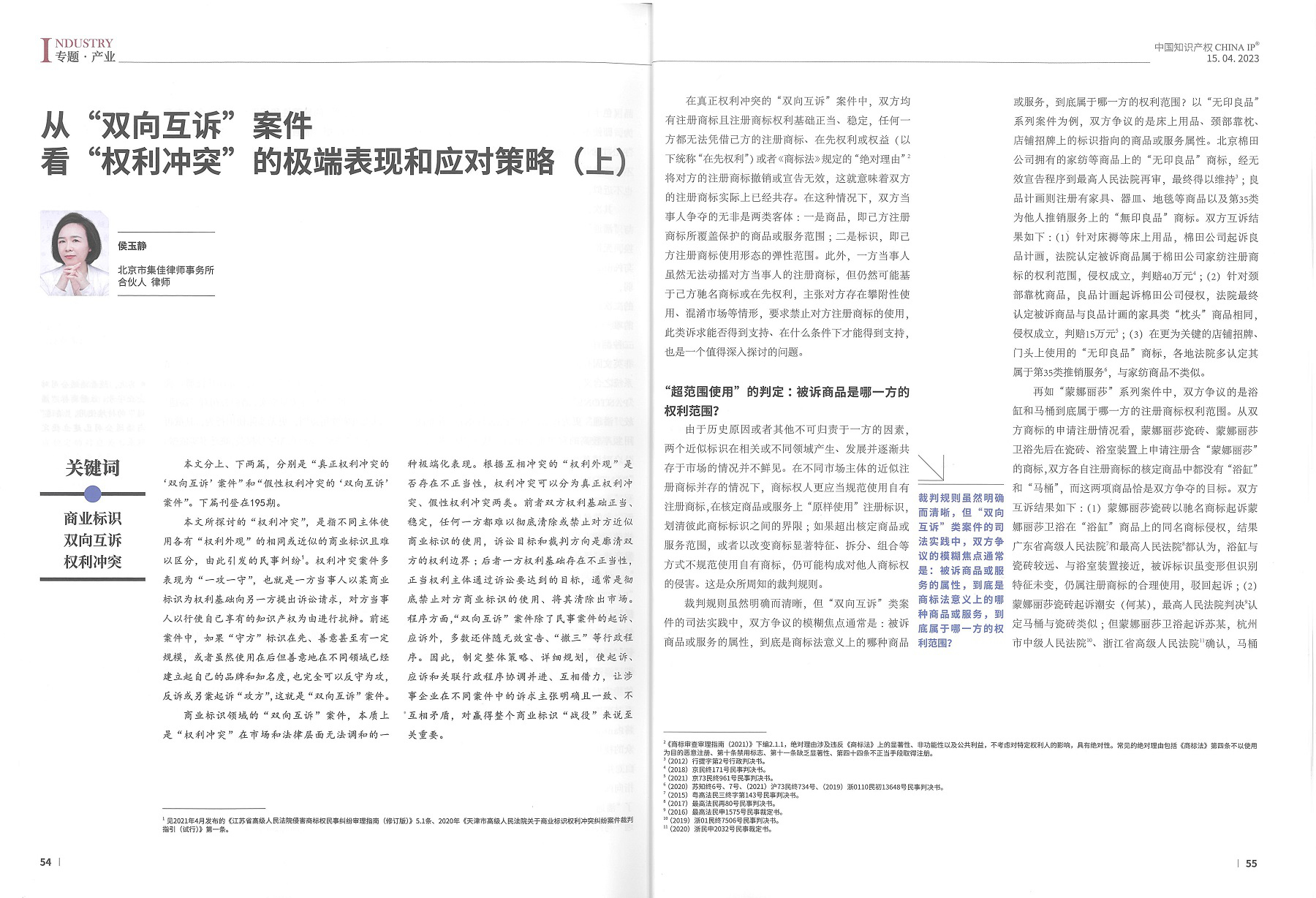 集佳文章《從“雙向互訴”案件看“權(quán)利沖突”的極端表現(xiàn)和應(yīng)對(duì)策略(上)》在《中國(guó)知識(shí)產(chǎn)權(quán)》發(fā)表