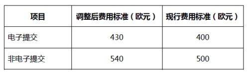 審查附加費(無國際檢索報告或國際初審報告):540 歐元(當前為500 歐元)