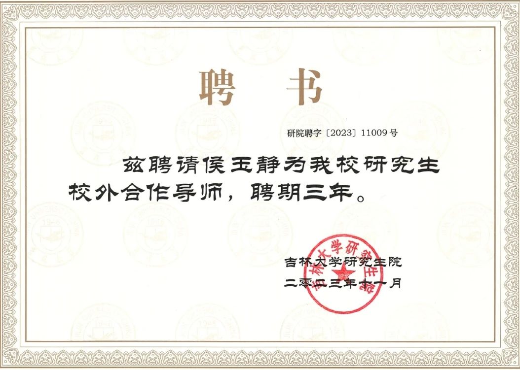 近日,吉林大學研究生院發(fā)布了研究生校外合作導(dǎo)師聘任名單,集佳合伙人侯玉靜律師受聘成為吉林大學研究生校外合作導(dǎo)師。