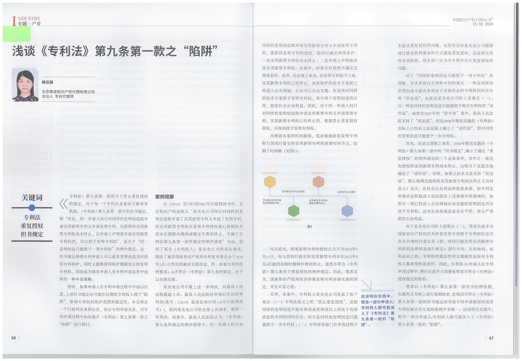 集佳文章《淺談<專利法>第九條第一款之“陷阱”》在《中國知識產權》發表