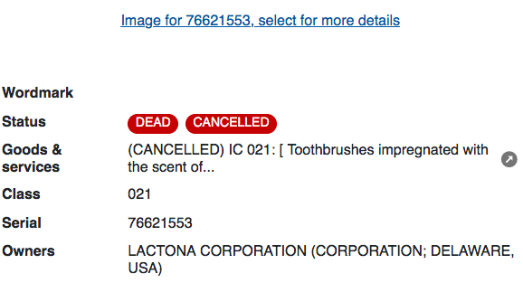 申請(qǐng)書(shū)中將這些產(chǎn)品列為“浸透草莓香味的牙刷”,該商標(biāo)于2007年正式獲得注冊(cè)。