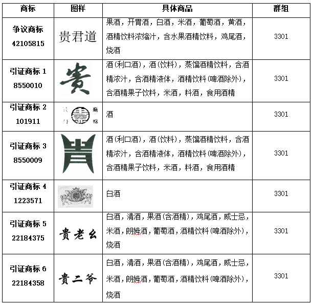 在引證商標已經具有一定知名度的情況下,作為同行業經營者的上海貴酒股份有限公司卻申請了上述“貴君道”商標(以下簡稱“訴爭商標”)。貴酒公司依據《商標法》第三十條,對“貴君道”商標提出了無效宣告。國知局審查認為:訴爭商標與引證商標構成類似商品上的近似商標,訴爭商標違反《商標法》第三十條的規定,應該予以無效宣告。