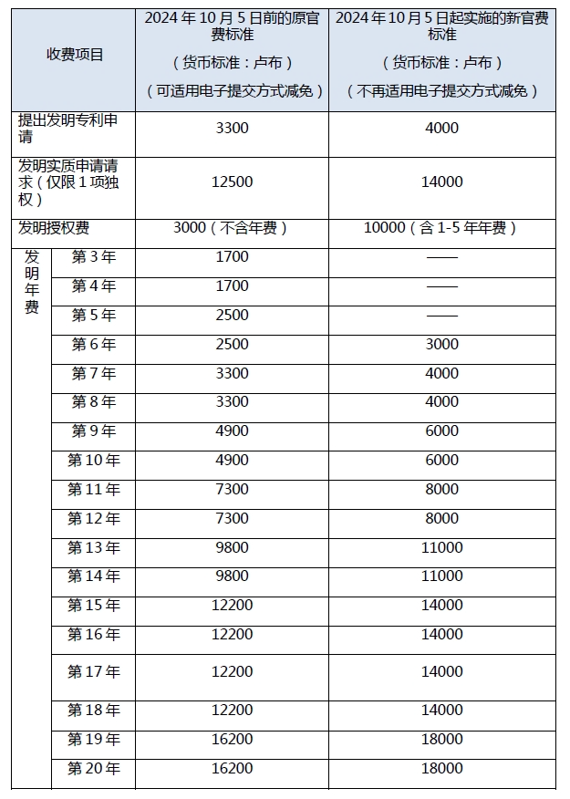 本次官費調(diào)整情況,涉及發(fā)明專利的內(nèi)容主要如下: