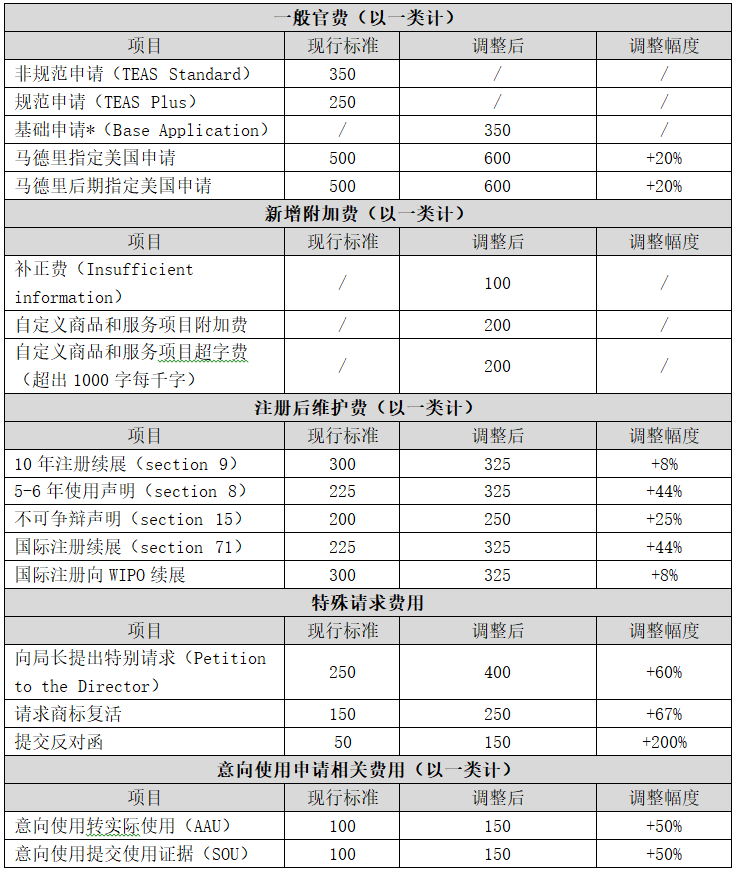 注:新的收費制度下,由350USD/類的基礎申請,取代此前的非規范申請(TEAS Standard)與規范申請(TEAS Plus)。