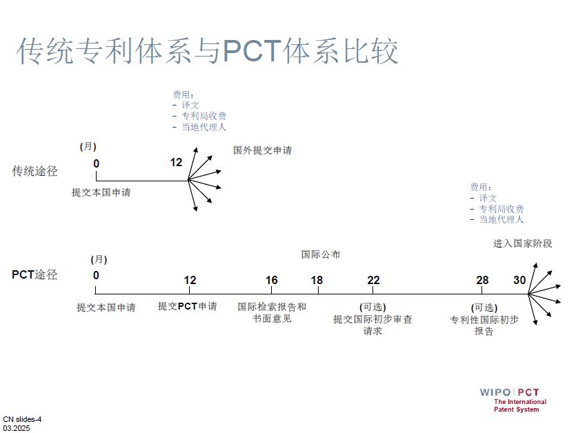 本國專利申請(qǐng)后12個(gè)月內(nèi)根據(jù)PCT提交國際申請(qǐng),要求《巴黎公約》優(yōu)先權(quán),“國家階段”在30個(gè)月時(shí)開始。